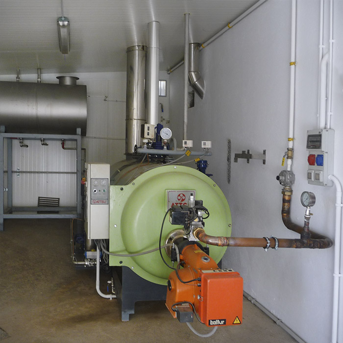 Instal·lacions de calderes de vapor, canonades, dipòsits, col·lectors i xemeneies.